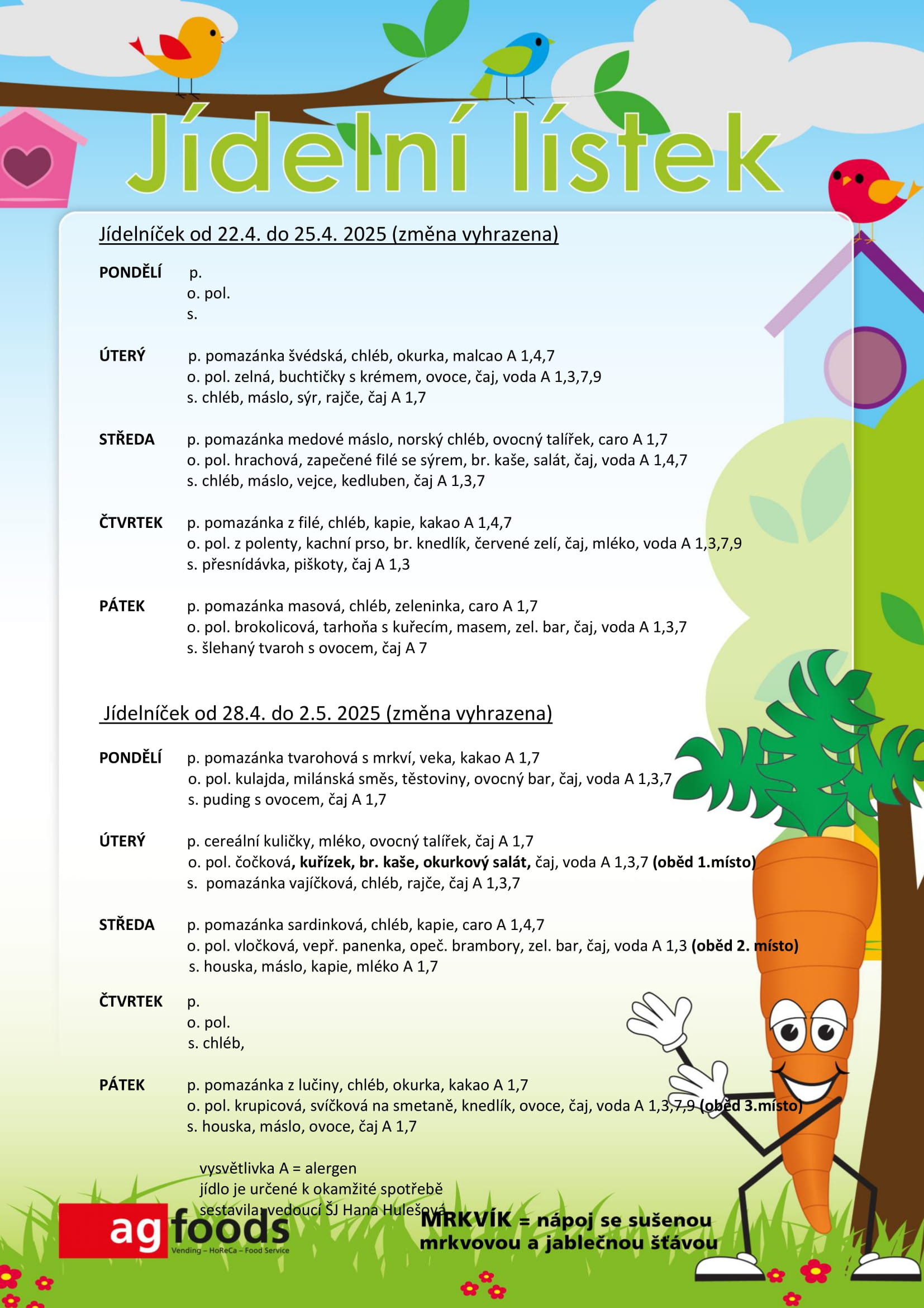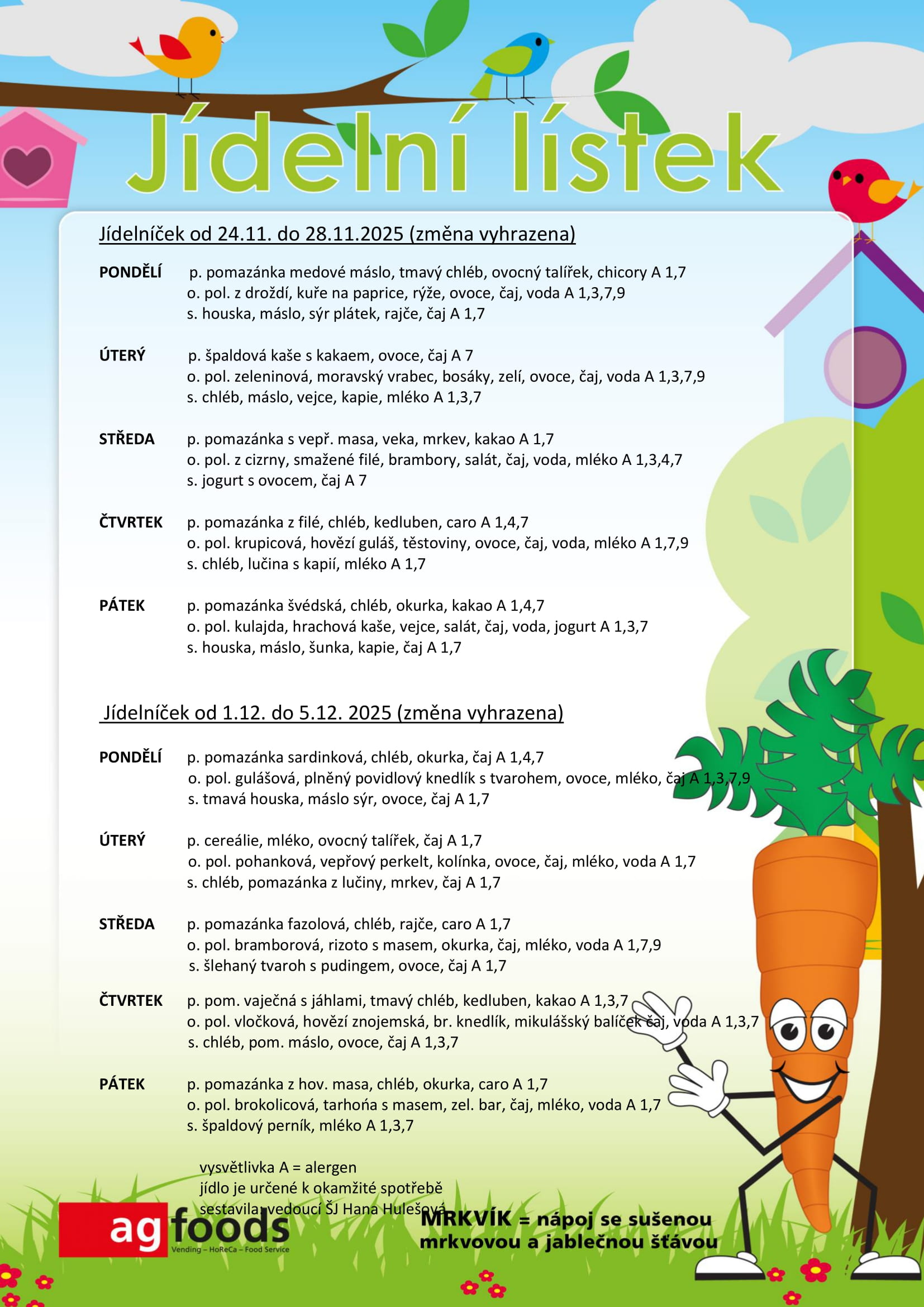 - Upozornění pro zákonné zástupce žáků základní školy: Naše škola je zapojena do projektů Mléko do škol a Ovoce a zelenina do škol. To znamená, že žák I. stupně má (podle aktuálních pravidel) nárok tyto produkty zdarma: neochucené mléko 2 ks za měsíc, ovoce nebo zelenina (podle druhu závozu) 1krát za týden. Více na stránce Projekty